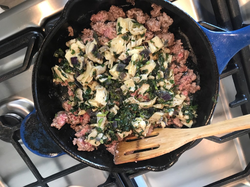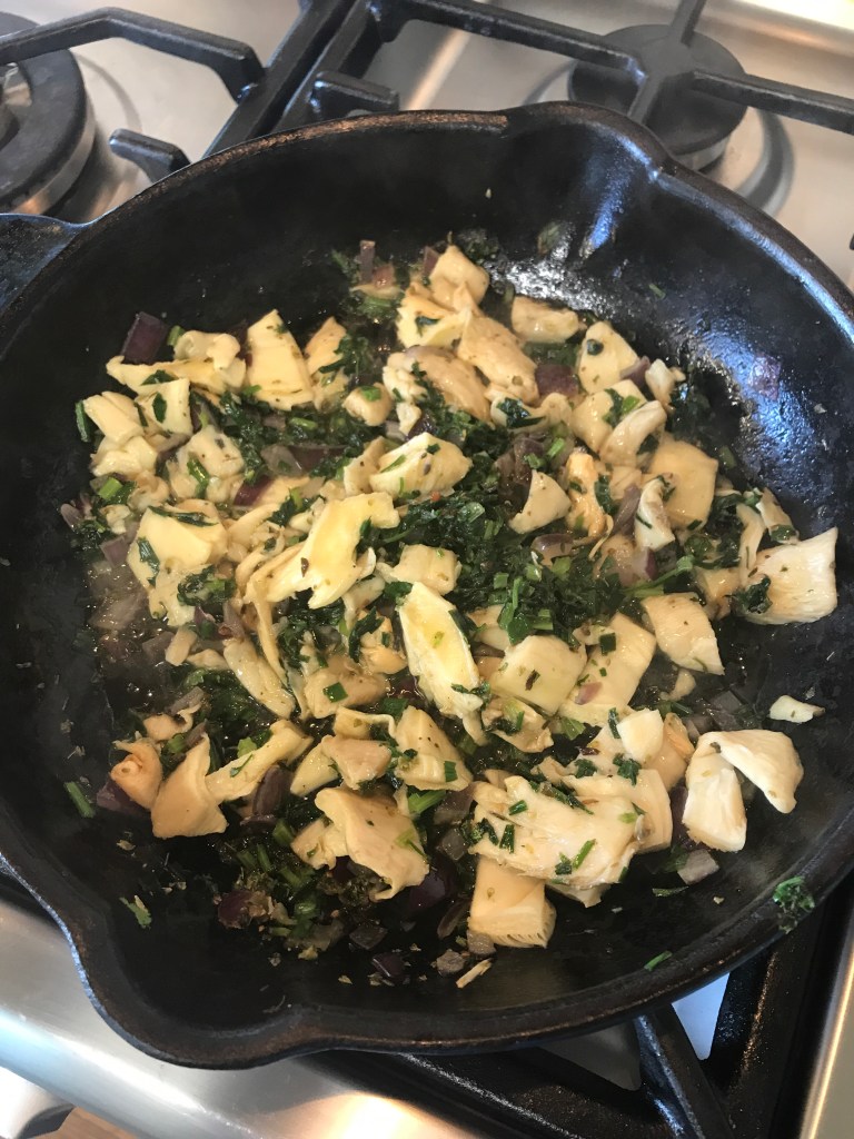 - Reheat the same heavy pan with a little extra olive oil.